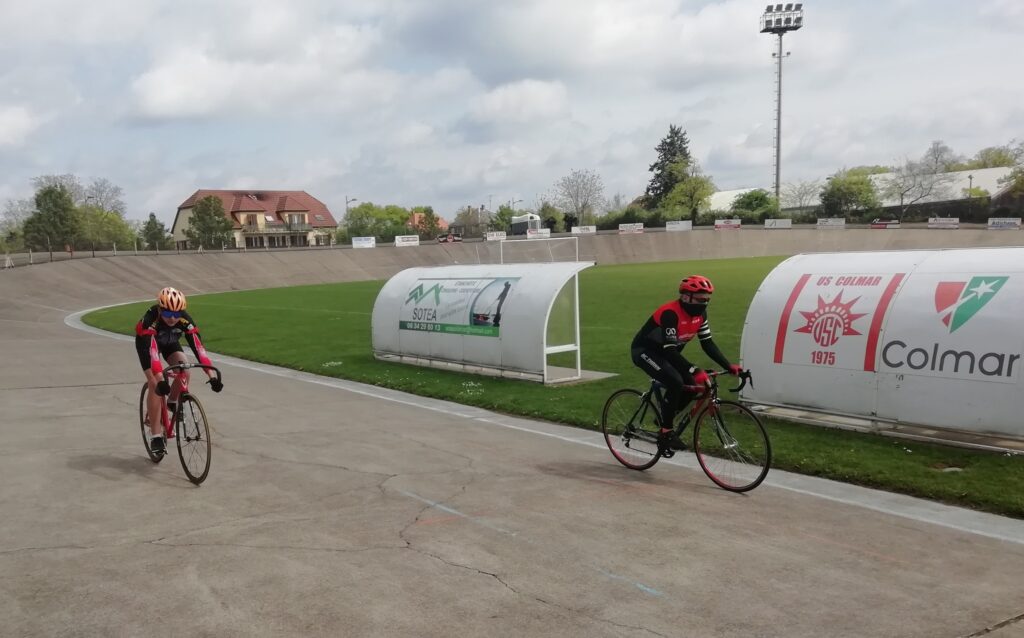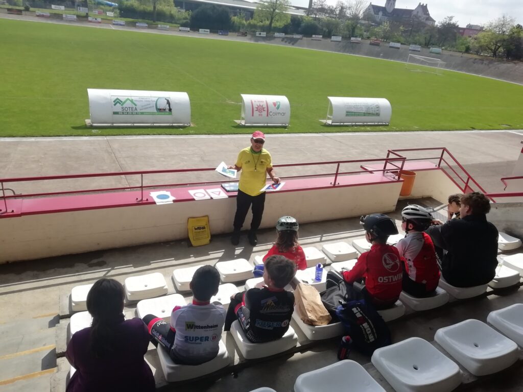 Jacques BALDECK dirige le stage sous la houlette du représentant grand est et notre président Christian SCHLEWITZ un stage de découverte de la piste a tous les club du CD68 et CD67. En plus des entrainements piste le mardi soir et vendredi soir en vu du grand prix de COLMAR le samedi 30 mai à …la piste de Hautepierre à Strasbourg (en attente des travaux promis lors de l’ AG du club ).
